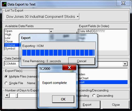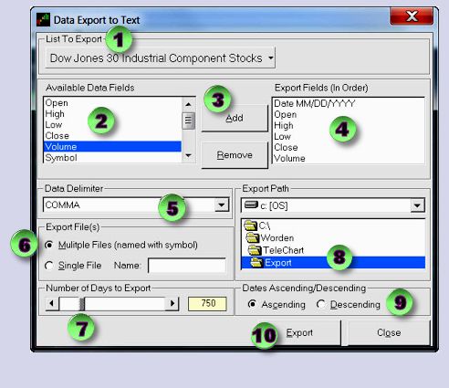 TeleChart data to ASCII files. In TeleChart's top menu bar, click Databank and then select Export to Text. Now follow these steps: